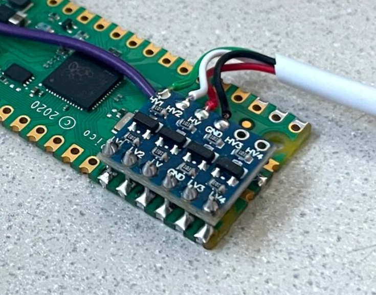 A good idea is to mount the level shifter on top of the Pico, as in this photo: