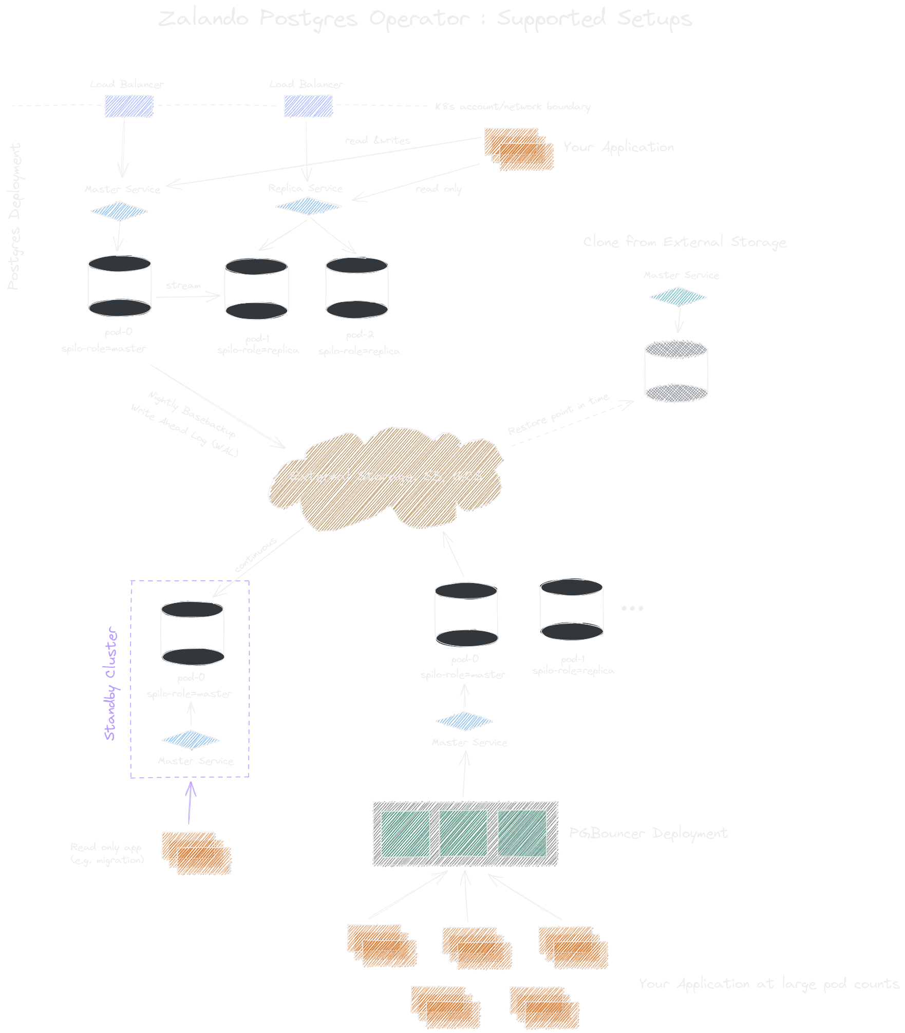 • Rolling updates on Postgres cluster changes, incl. quick minor version updates