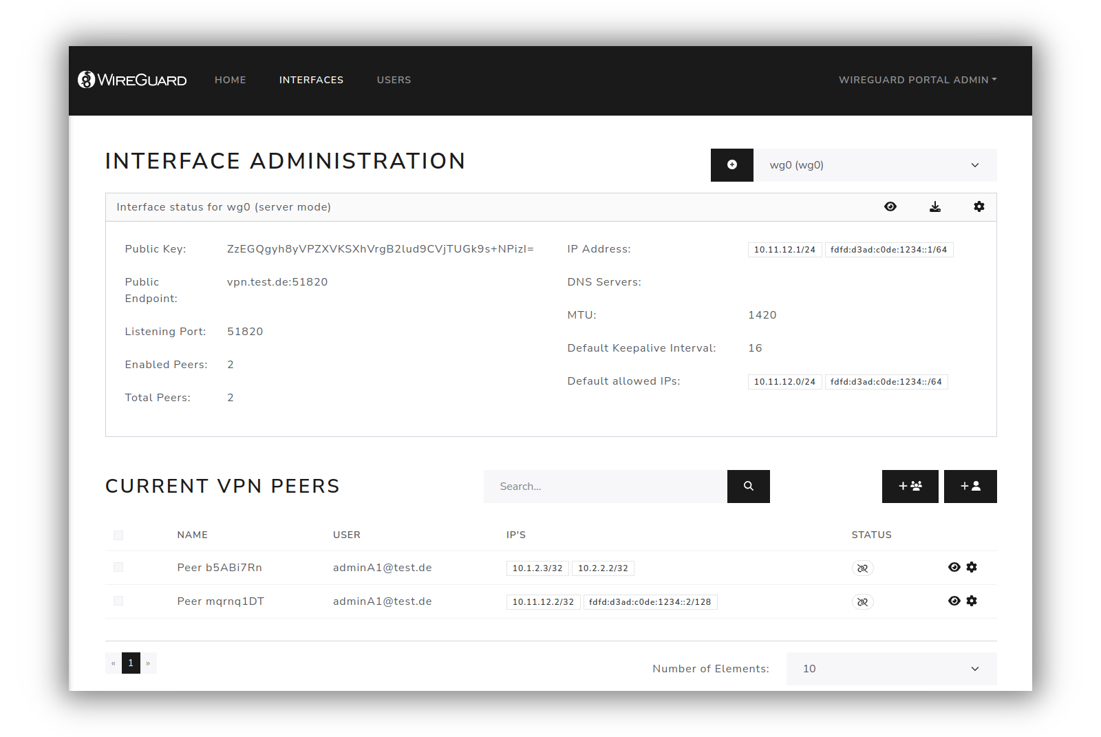 WireGuard Portal is a simple, web-based configuration portal for WireGuard server management. The portal uses the WireGuard wgctrl library to manage existing VPN interfaces. This allows for the seamless activation or deactivation of new users without disturbing existing VPN connections.