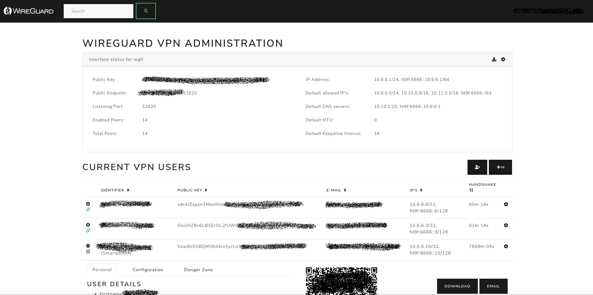 • Sent email to client with QR-code and client config
